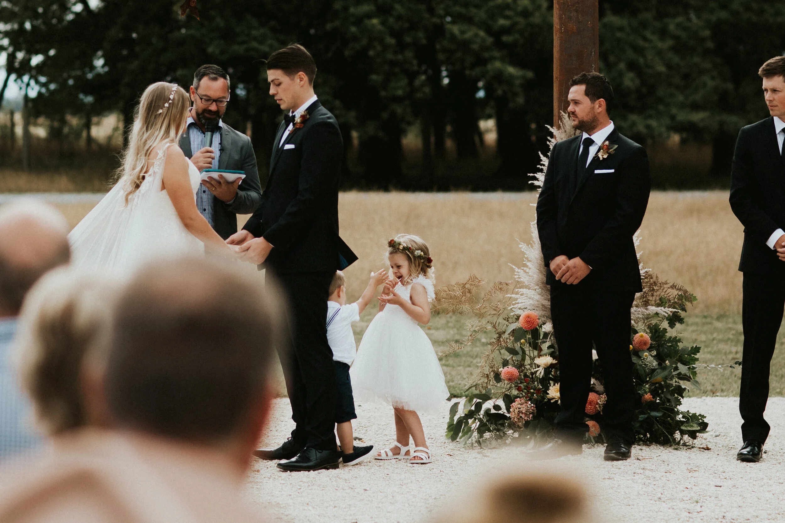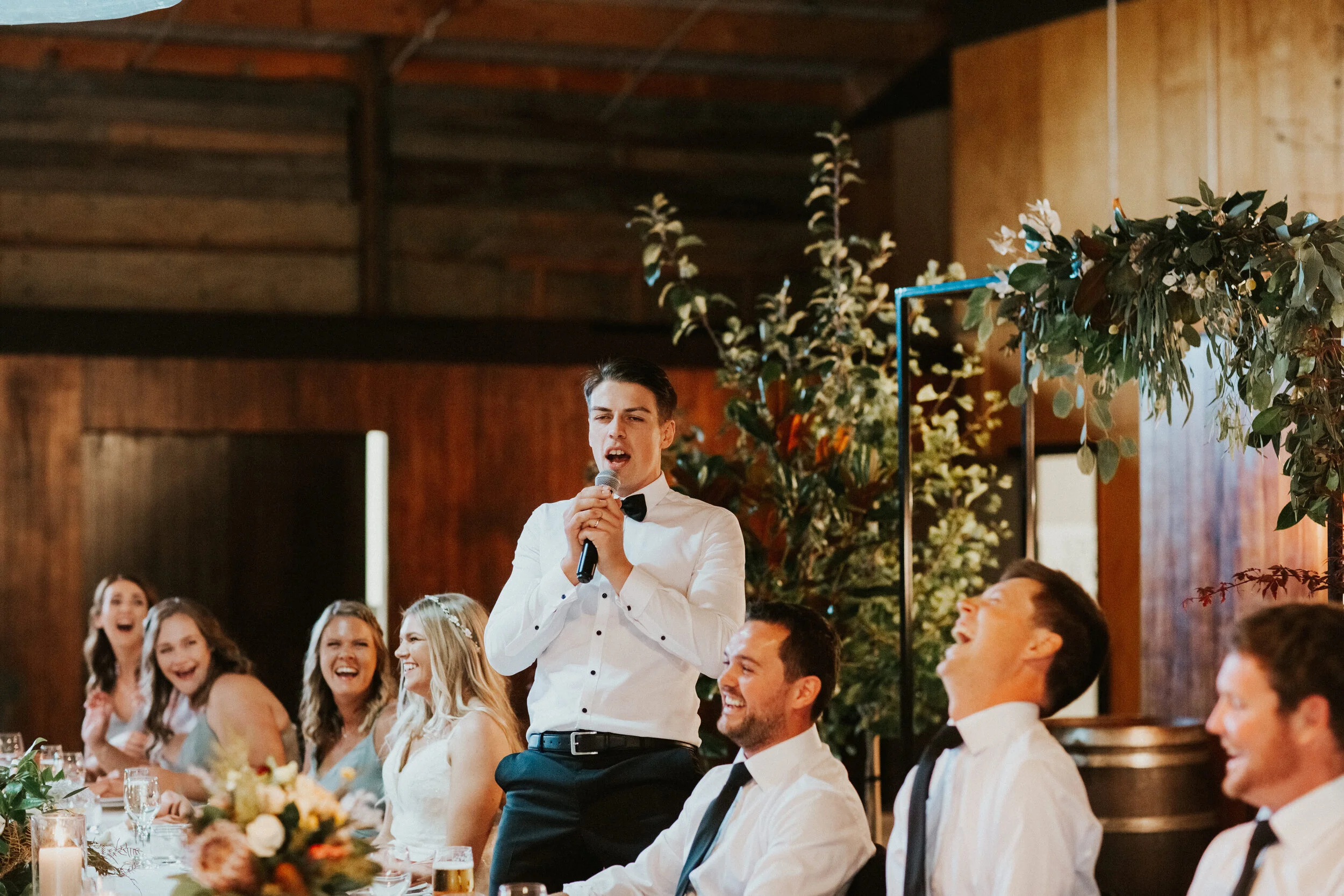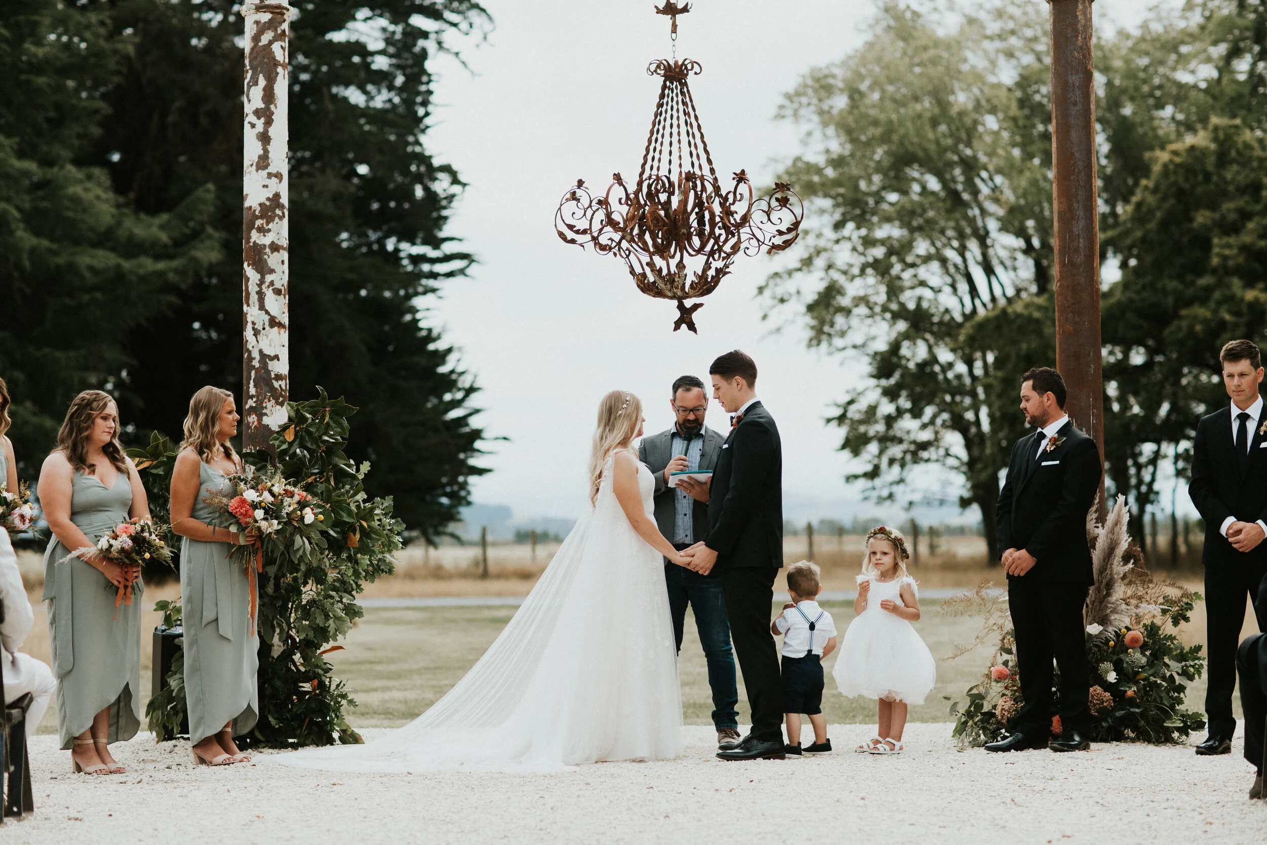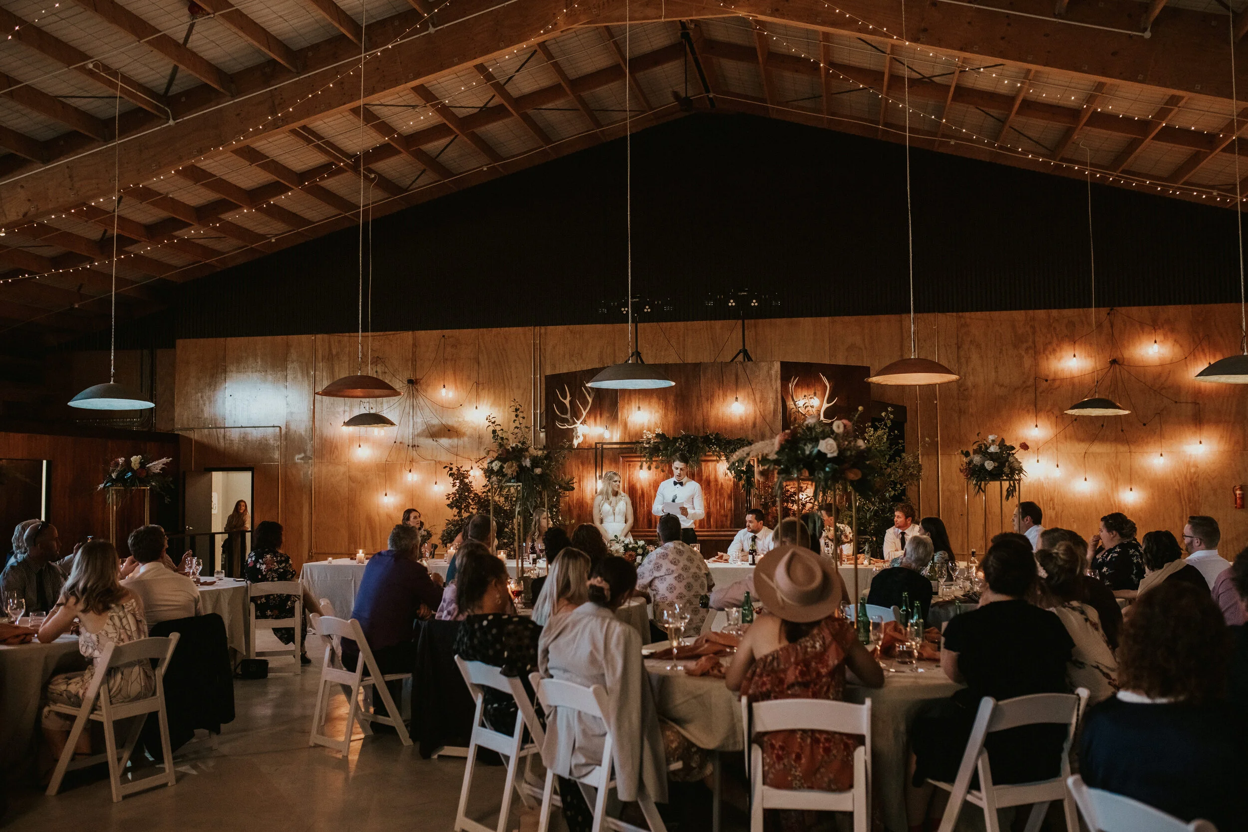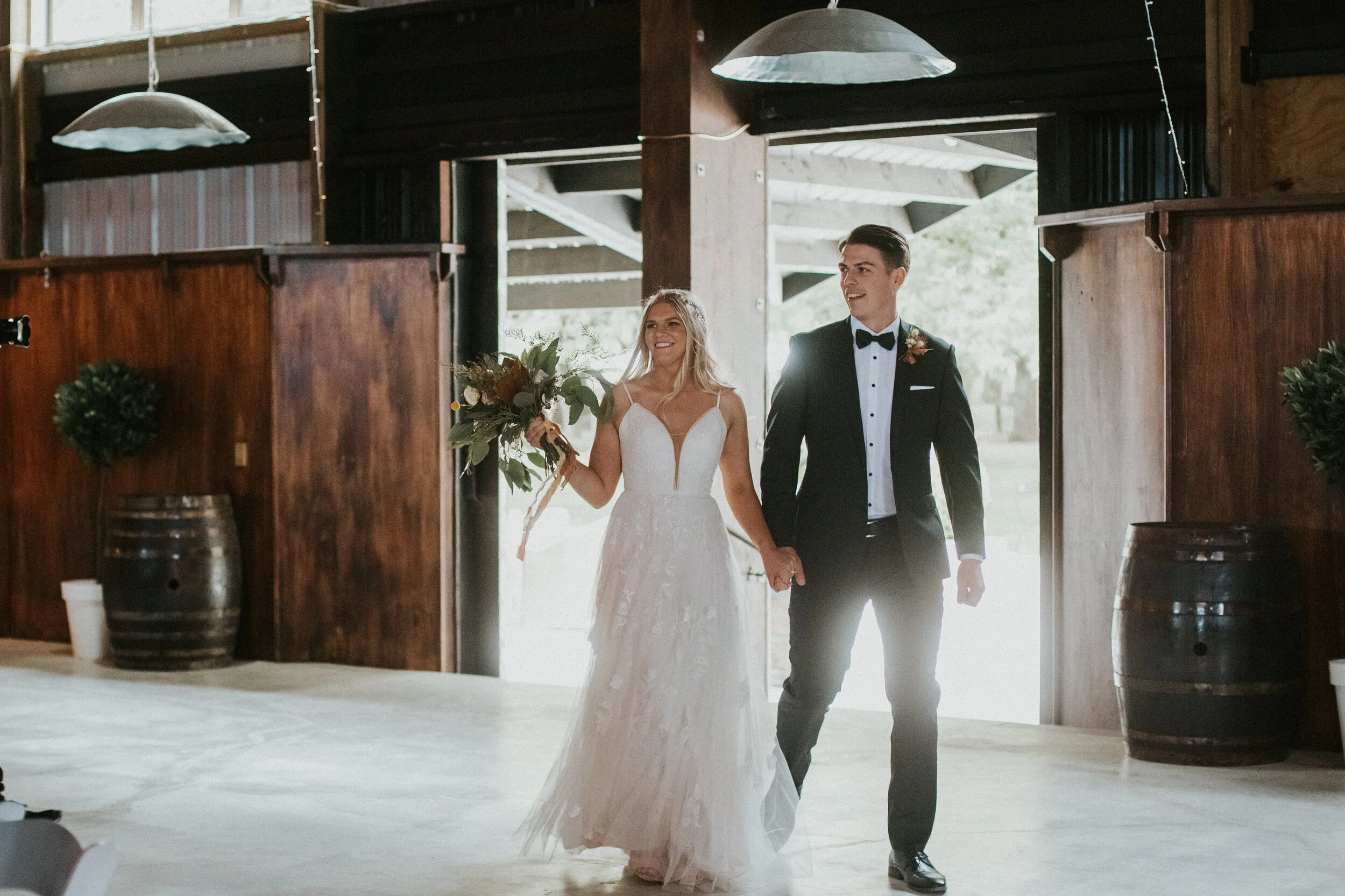 Their ceremony and reception were held at the newly opened Bangor Farm located in Darfield. This Oak tree lined property had previously been an award-winning operational deer farm, and the new owners India and Mark have worked extensively converting it into a magnificent lifetsyle property with the expansive deer sheds transformed into a grand reception room.