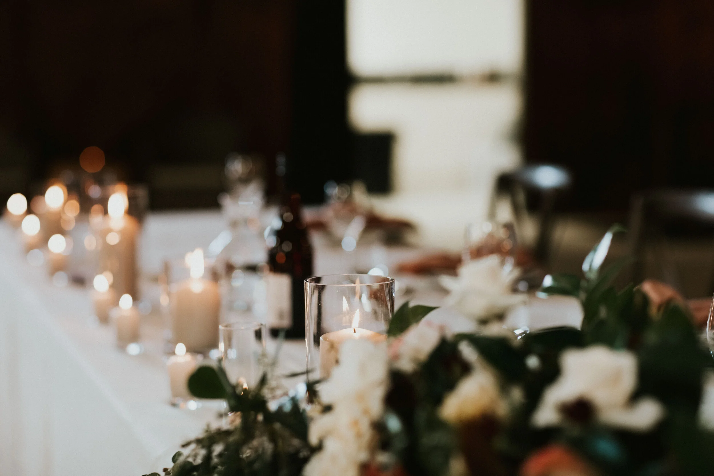 From the textured warm florals to the stationery - every little part of Jamie and Callum’s day was thought about, right down to the colour of the candles we chose for the tables! We decided we needed these to be a beautiful beige, to compliment the natural look of the French linen as white would be too stark. We are so glad we made the change - these looked incredible and added a delicious ambience to the tables.